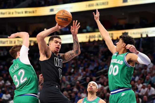 中場休息回來,獨行俠擴大63-49領(lǐng)先優(yōu)勢,籃網(wǎng)一波9-0攻勢追到僅差5分。獨行俠內(nèi)外開花擴大72-62領(lǐng)先優(yōu)勢,籃網(wǎng)一波9-2攻勢追到僅差3分,獨行俠再度擴大領(lǐng)先優(yōu)勢,獨行俠單節(jié)28-32被追回4分,三節(jié)結(jié)束獨行俠84-77領(lǐng)先籃網(wǎng)。前三節(jié)比賽,籃網(wǎng)三分27中6,波特4記三分22+7與夏普12+12;獨行俠三分27中12是籃網(wǎng)命中數(shù)兩倍,弗拉格21+4+4一度左腳扭傷幸無大礙,克萊4記三分12分,引領(lǐng)獨行俠4人得分上雙。