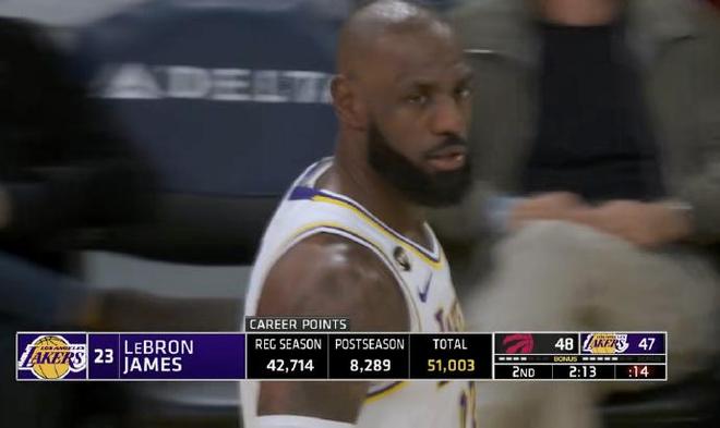 詹姆斯在對(duì)決猛龍的比賽之前,他NBA生涯常規(guī)賽與季后賽總得分,已經(jīng)達(dá)到50992分。伴隨詹姆斯如今上半場(chǎng)已經(jīng)得到13分,他成功解鎖NBA生涯常規(guī)賽51000分里程碑大關(guān)。