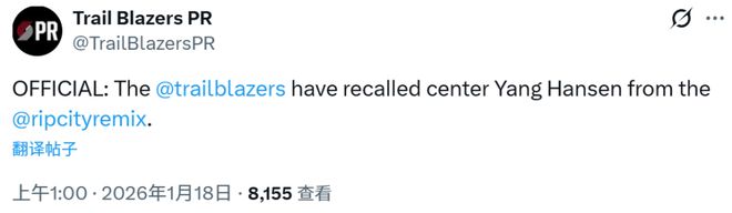 北京時(shí)間1月18日,開拓者官方宣布從混音召回了楊瀚森,他有望出戰(zhàn)今日主場(chǎng)對(duì)湖人的比賽。如果楊瀚森在這場(chǎng)比賽中登場(chǎng),這將是一次背靠背的比賽。昨日G聯(lián)賽對(duì)陣藍(lán)隊(duì),楊瀚森拿到14分17籃板2助攻2蓋帽,出現(xiàn)3次失誤5次犯規(guī),籃板創(chuàng)G聯(lián)賽生涯新高。