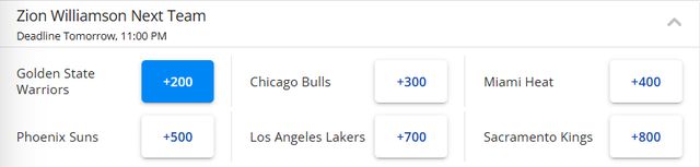 北京時(shí)間1月18日,錫安最新下家賠率出爐,勇士高居首位,他們成為了這位鵜鶘球星的頭號(hào)熱門下家。錫安下家賠率目前排在第1-6位的依次是勇士、公牛、熱火、太陽、湖人和國王。隨后美記James Piercey曬出了一份4換1的交易方案,認(rèn)為這是雙贏的選擇。