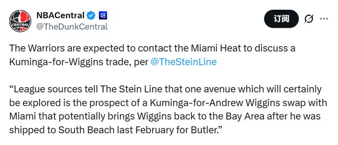Stein表示,自庫明加在1月16日主動(dòng)提出交易申請(qǐng)后,勇士隊(duì)“毫無疑問”會(huì)繼續(xù)推進(jìn)涉及這名球員的各類交易談判。