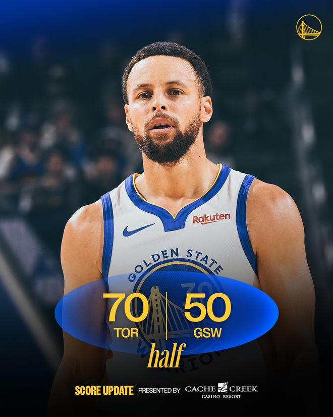 猛龍隊(duì)的奎克利上半場(chǎng)得到18分,巴恩斯得到14分、4個(gè)籃板和6次助攻,馬姆科拉什維利得到11分和8個(gè)籃板;勇士隊(duì)的庫(kù)里得到12分,佩頓得到9分。