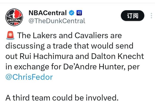 費(fèi)多爾表示:“據(jù)我得到的消息,騎士與湖人已就德安德烈-亨特的交易搭建初步框架,交易主體為八村壘和道爾頓-克內(nèi)克特,同時(shí)雙方還計(jì)劃引入第三方球隊(duì)參與交易。”