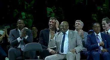 中場休息時間,獨行俠退役隊史名宿阿吉雷的24號球衣,諾維斯基與馬里昂等名宿出席。前3分鐘獨行俠67-70落后,黃蜂一波8-0攻勢擴大11分優(yōu)勢,雙方之后持續(xù)展開對攻。獨行俠逐步追到87-91落后,格林上籃,獨行俠一波6-0攻勢追分。弗拉格單節(jié)得到15分,引領獨行俠單節(jié)35-34凈勝1分,前三節(jié)結束雙方維持93-93。前三節(jié)比賽雙方均是4人得分上雙,黃蜂三分30中16,克尼佩爾8記三分28分與三球17分8助攻;獨行俠三分25中8,弗拉格23中16得到40+7。
