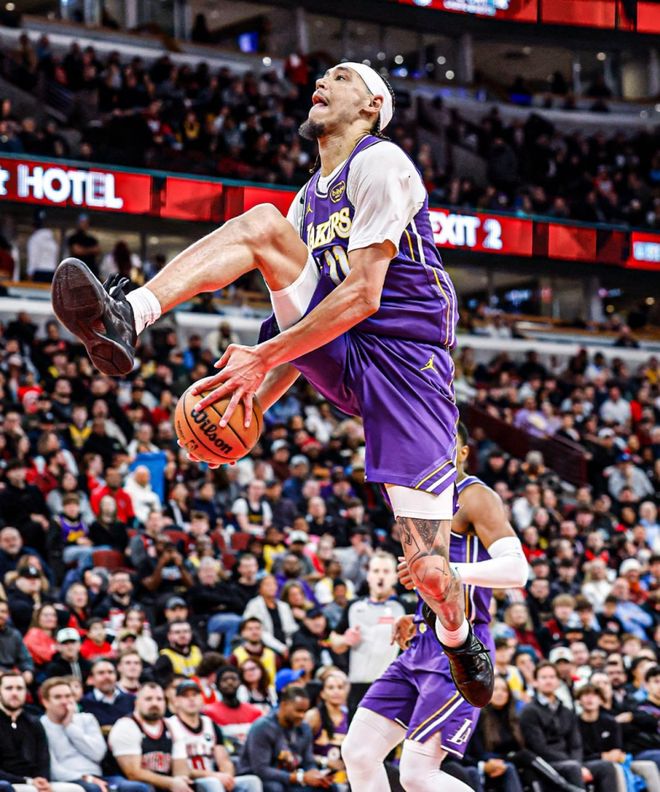 海斯身高2米13,扣籃時自帶“高個球員特效”,效果好壞姑且不論。不久前他還在湖人隊(duì)的一場常規(guī)賽中完成過一記胯下扣籃,顯然擁有一套專業(yè)級別的扣籃動作庫。海耶斯來自得克薩斯大學(xué),在2019年NBA選秀中于首輪第8順位被亞特蘭大老鷹隊(duì)選中。本賽季,海耶斯多數(shù)時間以替補(bǔ)身份為湖人出戰(zhàn),場均能貢獻(xiàn)6.4分、3.9個籃板,投籃命中率更是高達(dá)驚人的77.3%。