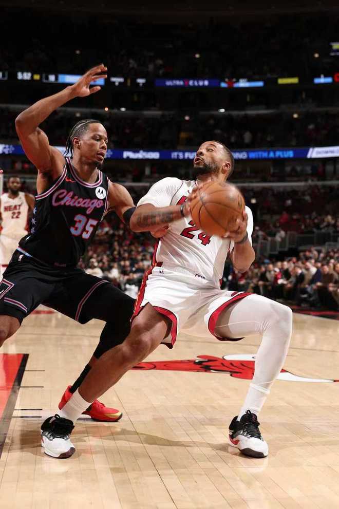 中場休息回來,公牛本場第二次單節(jié)得分30+,熱火連續(xù)兩節(jié)單節(jié)不足30分。熱火借助團(tuán)隊攻勢壓制公牛,在前半節(jié)維持78-66領(lǐng)先優(yōu)勢,公牛連追4分。熱火再度擴(kuò)大83-72領(lǐng)先優(yōu)勢,公牛反撲追到個位數(shù)差距,熱火單節(jié)29-34被追回5分,三節(jié)結(jié)束熱火91-85領(lǐng)先公牛。前三節(jié)比賽雙方均是5人得分上雙,熱火三分29中11,阿德巴約18+10與鮑威爾17分;公牛三分31中13,武切維奇13+8與赫爾特15+7。