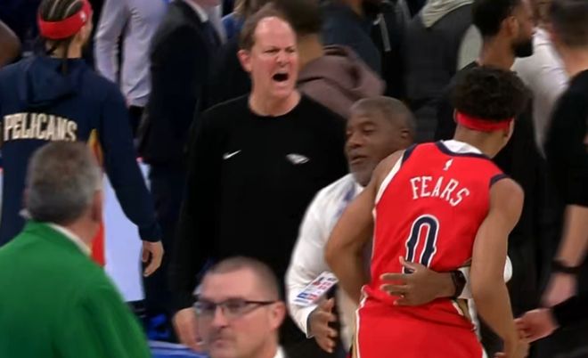 費(fèi)爾斯不滿又試圖加劇沖突,多次沖鋒去追打多爾特均是被阻擋,隨后他被鵜鶘工作人員一路“保駕”返回更衣室。