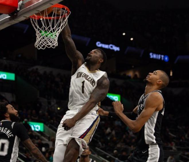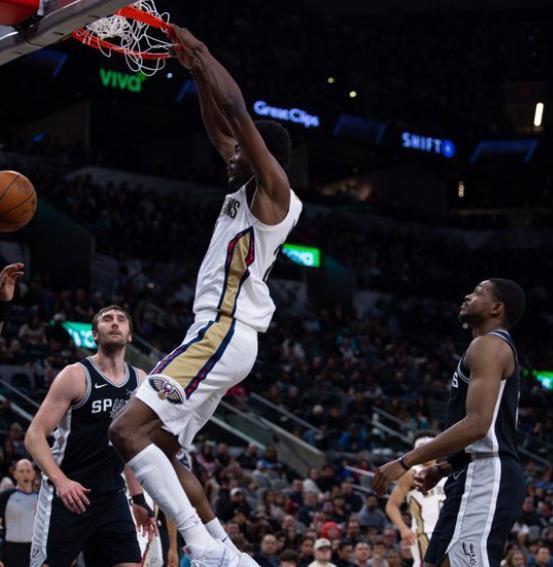這一個(gè)比賽日,馬刺坐鎮(zhèn)主場(chǎng)弗羅斯特銀行中心,迎戰(zhàn)來訪的新奧爾良鵜鶘,本場(chǎng)比賽胖虎錫安威廉姆斯展現(xiàn)出了狀元郎的統(tǒng)治力,率領(lǐng)鵜鶘在圣安東尼奧爆冷,以104-95復(fù)仇馬刺。